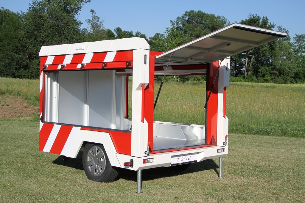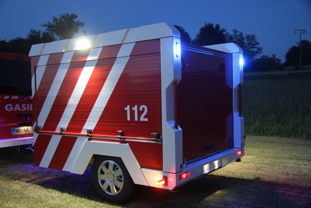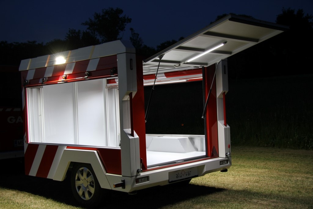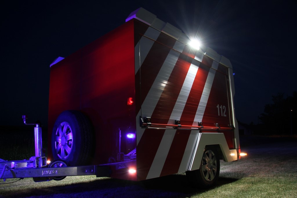 Der Anhänger AP1350 kann sehr verschiedenartig eingesetzt werden: für die Feuerwehr, Polizei, Bundeswehr, Zivilschutz, Bauwesen,…. Die zulässige Gesamtmasse ist 1350 kg, die Tragkraft 830 kg. Der Anhänger hat ein attraktives Design und ist an den Seiten mit Alu-Rolläden ausgestattet und hat eine Heckhebetür. Die Stützfüße, Griffe und die Led-Beleuchtung sind in den Heckspoiler aus widerstandsfähigem GFK Material integriert.